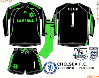 A pedido de JO533 los buzos de Peter Cech, arquero del Chelsea F. C. de la English Premier League 2009/2010. Utiliza buzo "adidas" negro con el número 1, el sponsor "samsung" y el escudo del club en verde. La bermuda es negra con las tres tiras verdes y las medias verdes con las tres tiras negras.C E C H